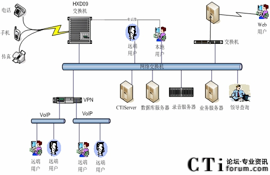 對(duì)于企業(yè)客戶服務(wù)中心系統(tǒng),選用行價(jià)比極高的hxd09可編程智能語(yǔ)音交換機(jī)作為語(yǔ)音接入設(shè)備,保障系統(tǒng)的高可靠性和穩(wěn)定性;同時(shí)具有良好的系統(tǒng)性能;以確保合理的、較少的投入,獲取最佳的配置,滿足不同企業(yè)()的需求。