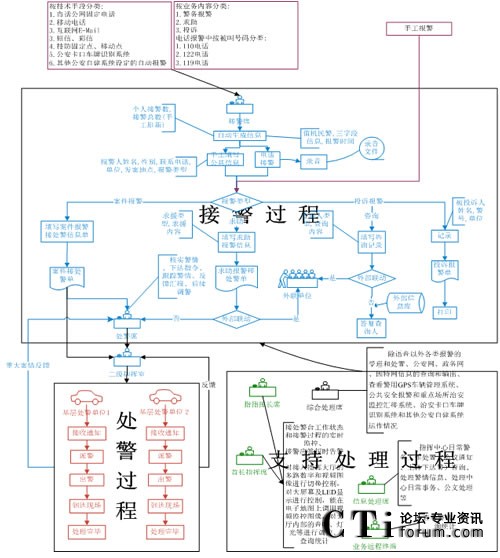 集成指揮調(diào)度系統(tǒng)的功能覆蓋了指揮調(diào)度的全部業(yè)務(wù)鏈,包括與110聯(lián)網(wǎng)處理警情、系統(tǒng)輔助下進(jìn)行處警指揮、調(diào)度警力和救援部門、交通疏導(dǎo)指揮、交通警保衛(wèi)、自動(dòng)記錄跟蹤處理情況、總結(jié)優(yōu)化指揮調(diào)度方案等業(yè)務(wù)工作。