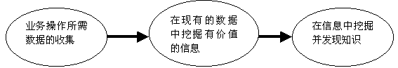 知識管理是在應(yīng)用操作的基礎(chǔ)上發(fā)展起來的,它經(jīng)歷了數(shù)據(jù)收集、信息挖掘和知識發(fā)現(xiàn)的三個歷程,如下圖所示。