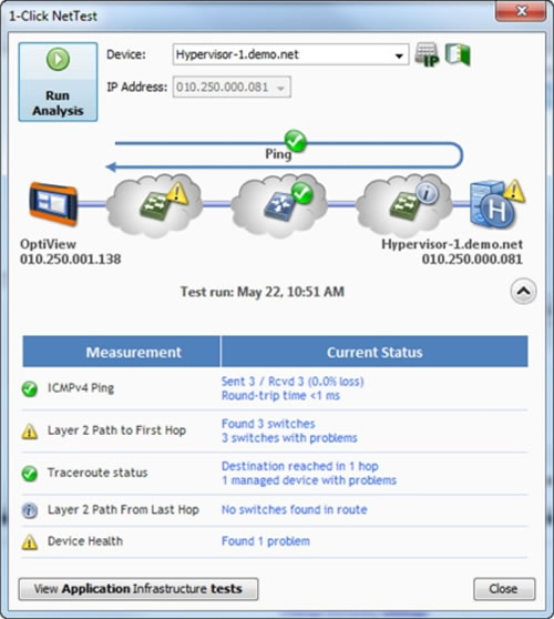 OptiView XG v8 具備兩種新的故障排除功能:一鍵 NetTest 和自動多段分析,能夠迅速確定數(shù)據(jù)路徑以及隔離出物理和虛擬網(wǎng)絡(luò)中的問題。只需按一下按鍵,一鍵 NetTest 就能找出單個屏幕視圖里的連接路徑。