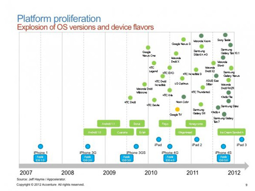 如果將蘋(píng)果的iOS作細(xì)細(xì)對(duì)比,不同種Android設(shè)備正呈現(xiàn)爆發(fā)式增長(zhǎng)