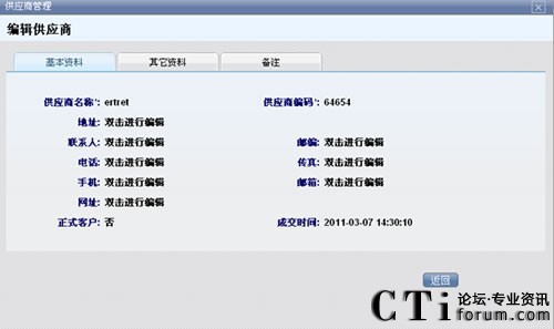 - 點擊【添加】按鈕,為新供應商做好資料錄入和備注,不落下一條產品相關產品信息,為事后查找提供有利的信息依據(jù)。