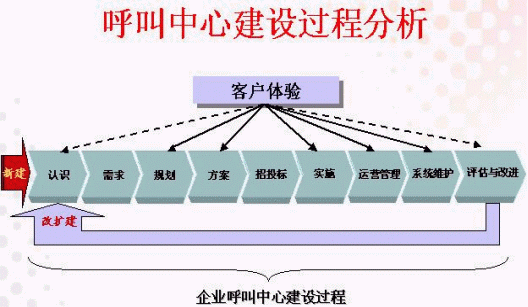 從以上的過程分析來看,無論新建或改擴建,企業(yè)都需要學習呼叫中心理念并加強認識、經過可行性研究、現狀評估整理出需求、進行呼叫中心的戰(zhàn)略規(guī)劃、設計建設方案、進行招投標確定系統(tǒng)集成商、考慮項目實施策略和方法、建立或改進運營管理和系統(tǒng)維護的體系等。
