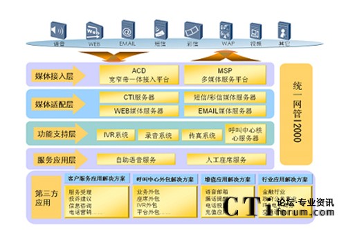 華為多媒體聯(lián)絡(luò)中心系統(tǒng)不僅支持普通語(yǔ)音呼叫的接入,還支持Email、Fax、短信、視頻等多種媒體呼叫接入,以及通過(guò)Web方式發(fā)起的護(hù)航瀏覽、點(diǎn)擊通話、文字交談等呼叫的接入,以語(yǔ)音、文字、圖像等多種媒體的組合為客戶提供多通道的服務(wù)。用戶可以同時(shí)通過(guò)語(yǔ)音、圖像、文字多種形式與聯(lián)絡(luò)中心的業(yè)務(wù)代表進(jìn)行交互,極大的拓寬了用戶與業(yè)務(wù)代表之間信息交互的空間,提高了信息交互的效率。