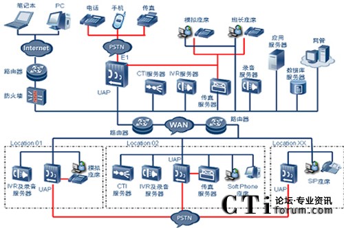 華為多媒體聯(lián)絡(luò)中心提供完善的分布式組網(wǎng)及集中式組網(wǎng)功能,可以提供分布式接入、分布式IVR、分布式錄音系統(tǒng)、分布式坐席、分布式傳真系統(tǒng)及網(wǎng)絡(luò)呼叫中心技術(shù)。如果各個(gè)分支機(jī)構(gòu)有較多本地化業(yè)務(wù)需求的時(shí)候,各個(gè)分支機(jī)構(gòu)只需要再配置一臺(tái)CTI服務(wù)器,就可以升級(jí)成完整的聯(lián)絡(luò)中心系統(tǒng),可以單獨(dú)開(kāi)展豐富的個(gè)性化業(yè)務(wù)。如果總部再安裝一套網(wǎng)絡(luò)呼叫中心,則可以實(shí)現(xiàn)聯(lián)絡(luò)中心的互連,即網(wǎng)絡(luò)呼叫中心。