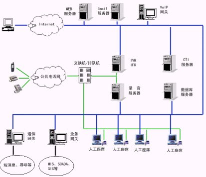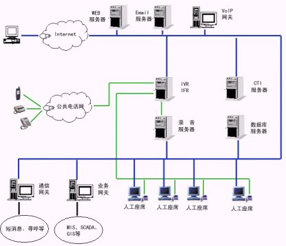 2、服務(wù)層:交互語音應(yīng)答服務(wù)器(IVR)軟件、中文語音合成(TTS)軟件、動(dòng)態(tài)傳真生成軟件、外撥軟件、計(jì)算機(jī)/電話集成服務(wù)器(CTI Server)軟件、自動(dòng)呼叫分配(ACD)軟件等等。