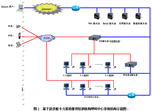 教育培訓(xùn)機(jī)構(gòu)呼叫中心系統(tǒng)是一個(gè)集合電話語音、計(jì)算機(jī)網(wǎng)絡(luò)、數(shù)據(jù)庫等技術(shù)的綜合信息服務(wù)平臺(tái),主要由自動(dòng)語音應(yīng)答系統(tǒng)、人工座席和數(shù)據(jù)庫系統(tǒng)三部分組成。