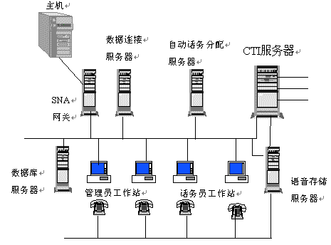 CTI服務(wù)器是電腦與電話信息集成的關(guān)鍵,所有經(jīng)由電話進(jìn)入的信息都會(huì)通過它傳到話務(wù)員電腦並自動(dòng)顯示,以提供進(jìn)一步服務(wù)。