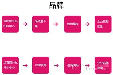 傳統(tǒng)型外包呼叫中心的品牌效應(yīng)不高,也就是說(shuō)在信用方面比較模糊,這對(duì)一些大型企業(yè)來(lái)說(shuō),根本無(wú)法放心的把業(yè)務(wù)外包給他們。