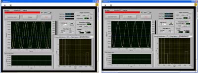 當(dāng)兩個(gè)(或多個(gè))設(shè)備一起工作并對(duì)時(shí)間有精確要求的時(shí)候,就需要在它們之間進(jìn)行同步。同步是基于在兩個(gè)設(shè)備之間規(guī)定一個(gè)共同的時(shí)間參考,試想如果將不同音軌的音頻訊號(hào)分別錄在不同的磁帶機(jī)上,則必須將這兩個(gè)磁帶機(jī)的磁帶傳送軸鎖定在一起,否則將來(lái)?yè)芊懦鰜?lái)就會(huì)有相位上的誤差,這個(gè)過(guò)程就稱(chēng)為同步。假使這兩個(gè)設(shè)備沒(méi)有進(jìn)行同步,無(wú)論它們開(kāi)始的時(shí)間多么一致,也會(huì)由于兩臺(tái)設(shè)備在機(jī)械結(jié)構(gòu)的差異而產(chǎn)生時(shí)間漂移。同樣的,對(duì)于數(shù)據(jù)采集卡也是一樣的概念,甚至在要求上更為嚴(yán)格。而如何達(dá)到數(shù)據(jù)同步采集,最基本的要求就是不同模塊間要有相同的工作時(shí)脈與一致的觸發(fā)信號(hào),而這個(gè)相同的時(shí)脈信號(hào)需來(lái)自于共同的外部?jī)x器。下圖中的弦波是兩張數(shù)據(jù)采集卡在同步與異步采集同一信號(hào)源所得的波形,在左圖中因異步而存在一向位差,右圖中則是同步觸發(fā)下得到完全重迭的波形。