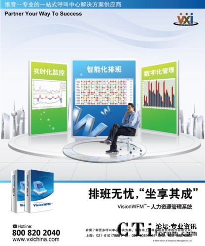 VisionWFM解決方案是為降低客戶服務(wù)中心的運營成本、提高客戶服務(wù)中心管理效率而設(shè)計的。我們可以通過系統(tǒng)軟件,科學地改進運營策略和管理方法,使客戶服務(wù)中心在服務(wù)質(zhì)量、客戶滿意度和成本控制等績效指標上都取得極大的提高。