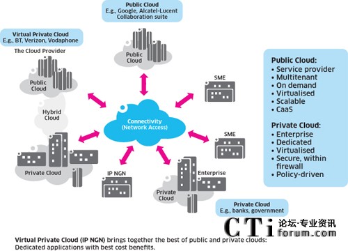 通信服務(wù)提供商非常適合定位于提供云服務(wù),阿爾卡特朗訊企業(yè)部,產(chǎn)品營銷,通信解決方案副總裁(如優(yōu)先級和應(yīng)用程序的緩存)。對于企業(yè)客戶,他們可以建立虛擬私有云,或簡單地成為純粹的云服務(wù)提供商,通過聚合資源,基于基礎(chǔ)設(shè)施為許多組織同時提供服務(wù)。