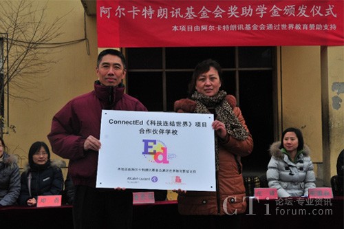 CTI論壇(ctiforum)3月6日消息(記者 浩宇):近日,法國(guó)阿爾卡特朗訊基金會(huì)(Alcatel-Lucent Foundation)與美國(guó)非營(yíng)利組織世界教育(World Education)在北京市大興區(qū)農(nóng)民工子弟學(xué)校——龍海學(xué)校聯(lián)合舉辦公益助學(xué)活動(dòng),來(lái)自阿爾卡特朗訊中國(guó)旗艦企業(yè)——上海貝爾及世界教育的志愿者為45名貧困生、72名成績(jī)優(yōu)秀學(xué)生、244名成績(jī)進(jìn)步獎(jiǎng)獲得者共計(jì)361人發(fā)放獎(jiǎng)助學(xué)金和獎(jiǎng)狀。此次活動(dòng)是ConnectEd“科技連結(jié)世界”項(xiàng)目協(xié)助流動(dòng)青少年“透過(guò)科技擁抱世界”系列公益活動(dòng)的重要一站,ConnectEd “科技連結(jié)世界”項(xiàng)目由阿爾卡特朗訊基金會(huì)(Alcatel-Lucent Foundation)與世界教育(World Education)共同在全球推動(dòng)。作為志愿者之一,上海貝爾執(zhí)行副總裁、阿爾卡特朗訊中國(guó)區(qū)產(chǎn)品與研發(fā)負(fù)責(zé)人莊靖博士參與了此次活動(dòng),并為阿爾卡特朗訊ConnectEd項(xiàng)目合作校揭牌。雙方還在北京市昌平區(qū)新源學(xué)校舉行了公益助學(xué)活動(dòng),為45名貧困生、39名成績(jī)優(yōu)秀學(xué)生、52名成績(jī)進(jìn)步獎(jiǎng)獲得者共計(jì)136人發(fā)放獎(jiǎng)助學(xué)金。