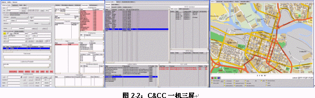 一機三屏:一屏CAD,另一屏為GIS,第三屏專用于資源調(diào)度。與雙屏配置相比,三屏配置的優(yōu)勢在與資源調(diào)度更加直接、快捷,同時更可以整合無線調(diào)度通訊資源。但是三屏配置需要較復雜的客戶化工作。