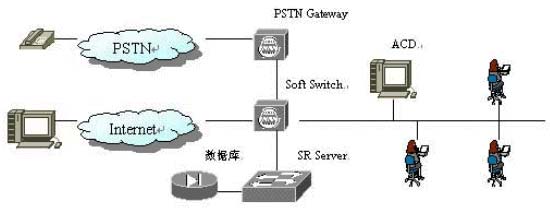 2. 由ACD響應(yīng),并將電話接入IVR(交互語音應(yīng)答系統(tǒng)),詢問客戶需要幫助的類型,并將客戶的語音應(yīng)答傳送到SR Server;