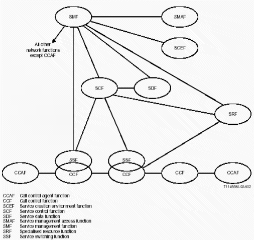 IN CS-1推薦了網(wǎng)絡(luò)接入點(diǎn)(NAP),業(yè)務(wù)交換點(diǎn)(SSP),業(yè)務(wù)控制點(diǎn)(SCP) ,業(yè)務(wù)交換控制點(diǎn)(SSCP) ,業(yè)務(wù)數(shù)據(jù)點(diǎn)(SDP),業(yè)務(wù)節(jié)點(diǎn)(SN),附加設(shè)備(AD),智能外設(shè)(IP)等幾種可能的物理實(shí)體。