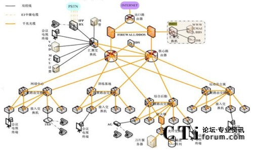 湖北奧體中心智能化項目的建設(shè)需求為:實現(xiàn)中心的綜合后勤、運(yùn)動員公寓、訓(xùn)練基地區(qū)、網(wǎng)球中心的數(shù)據(jù)網(wǎng)絡(luò),該網(wǎng)絡(luò)在部署完善的有線網(wǎng)絡(luò)的同時還利用無線網(wǎng)絡(luò)對大空間及無線接入進(jìn)行覆蓋,滿足移動用戶對數(shù)據(jù)網(wǎng)絡(luò)接入的需求。實現(xiàn)語音通信、會議電視、設(shè)備管理、辦公自動化、物業(yè)管理、VOD、E-MAIL、新聞媒體、賽事管理、計時記分等業(yè)務(wù)。即實現(xiàn)一個數(shù)據(jù)、語音和視頻的交換平臺。