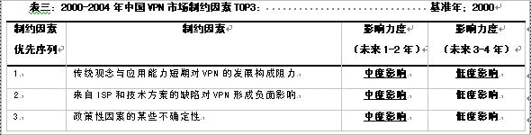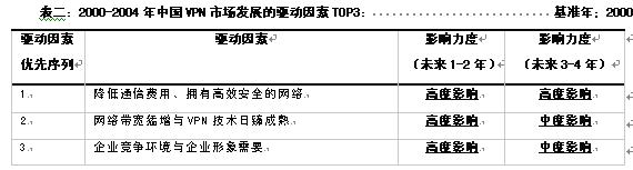 三、2000-2004年度,中國VPN市場發(fā)展的驅動與制約因素