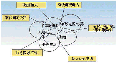 數(shù)據(jù)服務同本地電話服務的融合,是不來最重要的融合趨勢之一,其主要體現(xiàn)在通過本地電話可以解決數(shù)據(jù)業(yè)務的接入問題,可以提供窄帶或寬帶的接入能力。同時,可以為Internet服務,如電子郵件服務同電話話音服務結合起來創(chuàng)造條件。一種未來的發(fā)展方向就是利用電話來接收電子郵件同時可以用電子郵件的方式閱讀語言信箱中的留言。“聽電子郵件,看語言信箱”是對這種融合服務的最好描述。而數(shù)據(jù)業(yè)務同長途電話業(yè)務的融合集中于通過VoIP技術提供長途電話服務,競爭收入最大的電信市場。數(shù)據(jù)服務同有線電視娛樂服務的融合主要體現(xiàn)在以Cable Modem做為數(shù)據(jù)接入手段和視頻點播這樣的娛樂服務。通過Cable Modem,有線電視網(wǎng)也可以提供本地電話和長途電話接入業(yè)務,象AT&T和TCI 及MediaOne 正在進行的電話業(yè)務實驗。而寬帶的數(shù)據(jù)接入則為數(shù)據(jù)服務的寬帶化提供了條件。