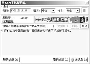 目前IM與各種移動(dòng)終端設(shè)備的結(jié)合也越來(lái)越多。使用QQ向手機(jī)發(fā)送短信需要手機(jī)開(kāi)通移動(dòng)QQ服務(wù),單擊對(duì)方頭像圖標(biāo),在打開(kāi)的快捷菜單中選擇“手機(jī)短訊”命令,在打開(kāi)的對(duì)話框中輸入信息,然后點(diǎn)擊發(fā)送即可完成,這時(shí)對(duì)方的手機(jī)就可以收到一個(gè)消息。給BP機(jī)發(fā)短訊也是一樣,不過(guò)對(duì)方的BP機(jī)服務(wù)臺(tái)必須是QQ所支持的情況下才行。當(dāng)對(duì)方的手機(jī)收到你發(fā)來(lái)的短信后還可以回復(fù),這時(shí)候您的QQ會(huì)彈出“查看手機(jī)短訊”的窗口來(lái),非常方便。