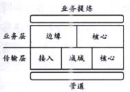 業(yè)務(wù)層的基本功能是在由傳送層提供的“電路”中把負(fù)荷進(jìn)行“整形”并進(jìn)行信息的交換,其目標(biāo)是提升每一個比特的價值。業(yè)務(wù)層被橫切為邊緣和核心兩大部分,界線是10萬分組/s。在業(yè)務(wù)層,數(shù)據(jù)分組被單獨處理或者作為“流”(與特定用戶或應(yīng)用相關(guān)的分組串)來處理,老的技術(shù)包括幀中繼和ATM,新的技術(shù)MPLS有可能成為ATM的替代技術(shù)。