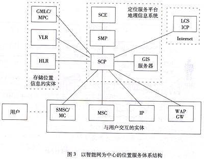 ICP服務(wù)器連接,以獲取地理信息和業(yè)務(wù)信息。SCP將執(zhí)行位置服務(wù)的業(yè)務(wù)邏輯,控制移動(dòng)交換機(jī)(MSC),獨(dú)立外設(shè)(IP),短信中心(SMSC)等網(wǎng)絡(luò)設(shè)備與用戶交互,實(shí)現(xiàn)位置業(yè)務(wù)。