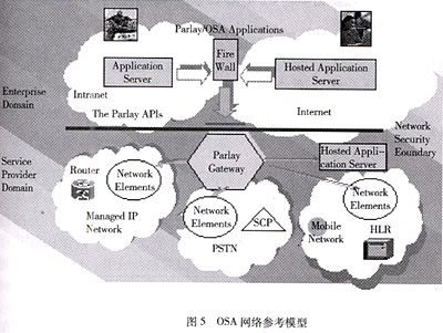 Server),以及它們之間的開放接口。OSA繼承了智能網(wǎng)的思想精髓,高度抽象了底層網(wǎng)絡(luò)的能力,采用OSA/Parlay API編程接口,向第三方業(yè)務(wù)開發(fā)商開放,徹底屏蔽了底層網(wǎng)絡(luò)的復(fù)雜性。OSA/Parlay