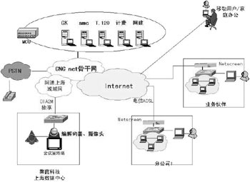 對(duì)于規(guī)模小的分公司,沿用原來(lái)的因特網(wǎng)專(zhuān)線(xiàn), 作為視頻系統(tǒng)的接入。