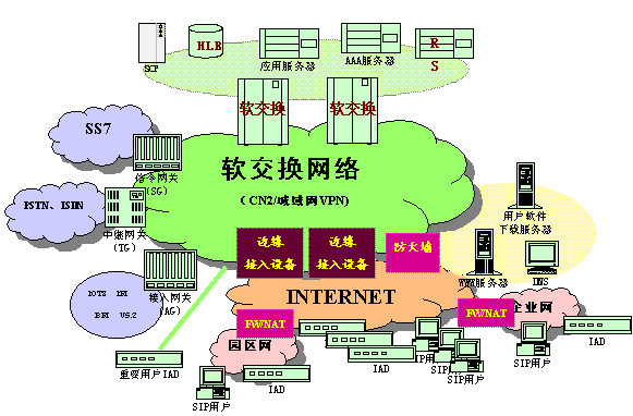 對(duì)于部署在專網(wǎng)上的TG及AG/部分IAD設(shè)備 當(dāng)用戶發(fā)起業(yè)務(wù)請(qǐng)求時(shí),網(wǎng)關(guān)設(shè)備將根據(jù)預(yù)設(shè)的SS IP地址將呼叫送至相應(yīng)的SS。