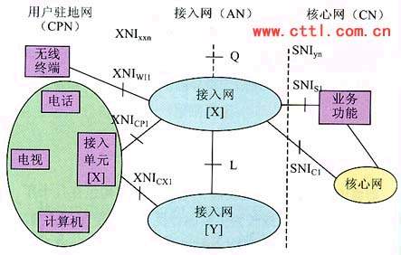 在圖中,XNI為接入網(wǎng)與用戶駐地網(wǎng)的接口,SNI為接入網(wǎng)到核心網(wǎng)之間的接口,L參考點(diǎn)為不同接入網(wǎng)之間的接口參考點(diǎn)。下一代的接入網(wǎng)應(yīng)綜合利用多種手段在XNI和SNI之間提供有質(zhì)量保證的基于分組的寬帶的傳送承載能力。下一代網(wǎng)絡(luò)的接入網(wǎng)應(yīng)具有以下特點(diǎn):