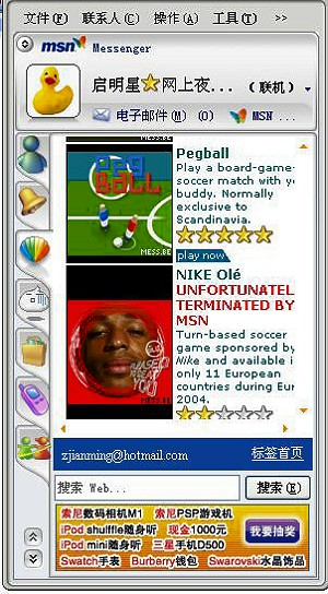 3) 拼接代替加強(qiáng)。現(xiàn)有應(yīng)用的簡單決定了IM軟件本身的簡單,因此IM本身變得不受關(guān)注,廠商所作的大多是功能拼接,例如MSN加強(qiáng)聯(lián)網(wǎng)游戲,QQ傍上移動(dòng)。甚至可以認(rèn)為,IM本身已經(jīng)被置于次要位置。