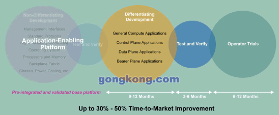 摩托羅拉將這種預(yù)集成并驗(yàn)證的基礎(chǔ)平臺(tái)稱之為面向應(yīng)用的平臺(tái),采用這個(gè)方式可以極大的加快進(jìn)入市場(chǎng)的速度,使TEM專注于開發(fā)自己產(chǎn)品的差異化功能與內(nèi)容;跇(biāo)準(zhǔn)的平臺(tái)同時(shí)具有豐富的核心能力,從硬件,OS到高可用中間件與管理接口,它不是為單一應(yīng)用而設(shè)計(jì),而是為廣闊市場(chǎng)準(zhǔn)備的通用平臺(tái)。
