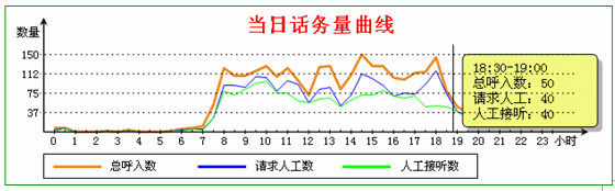 3.3 呼叫監(jiān)控。系統(tǒng)隨時提供話務(wù)曲線,反映95598熱線整體的服務(wù)水平,如下圖: