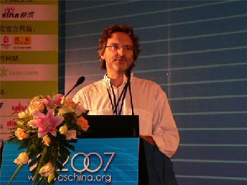 下圖為中國-歐盟信息社會項目組法學(xué)專家托馬斯·哈特博士談歐洲監(jiān)管經(jīng)驗。