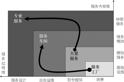 本質(zhì)上講,電信服務(wù)產(chǎn)品的四類服務(wù)都是在此二維機理的作用下生成的,服務(wù)的內(nèi)容映射著企業(yè)的有形資本資源和人力資本資源,服務(wù)的過程映射著企業(yè)的組織資本資源,從一種服務(wù)向另一種服務(wù)躍遷,不僅僅是服務(wù)過程和服務(wù)內(nèi)容的重新整合,更重要的是需要彌補相應(yīng)的資源,才能達(dá)到服務(wù)生成的結(jié)果,否則,躍遷就不會成功。