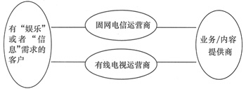 如圖1所示,雖然兩者使用的技術(shù)不同,但它們有一個(gè)相同的運(yùn)營(yíng)組織結(jié)構(gòu),也就是說(shuō),客戶(hù)、運(yùn)營(yíng)系統(tǒng)和業(yè)務(wù)/內(nèi)容提供商是它們競(jìng)爭(zhēng)的3要素,下面將從這幾個(gè)方面對(duì)IPTV與“數(shù)字電視”的競(jìng)爭(zhēng)做簡(jiǎn)要的分析。