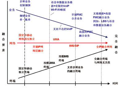 從實現(xiàn)過程來看,運(yùn)營商一般都以業(yè)務(wù)捆綁為切入點,然后逐步實現(xiàn)業(yè)務(wù)融合和終端融合。