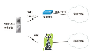WiFi/GSM雙模手機(jī)既可以接入無線局域網(wǎng)WLAN,實現(xiàn)VoIP(VoiceoverIP)功能,又可以接入蜂窩網(wǎng),實現(xiàn)移動通信功能。但傳統(tǒng)的WiFi/GSM雙模手機(jī)在進(jìn)行WiFi網(wǎng)絡(luò)和GSM網(wǎng)絡(luò)之間的切換時,無法實現(xiàn)無縫切換,用戶體驗比較差,因此前幾年這種雙模終端發(fā)展得并不理想。
