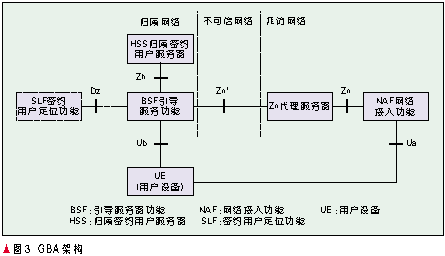 GBA是采用共享密鑰的統(tǒng)一認證架構(gòu),其網(wǎng)絡(luò)模型見圖3。