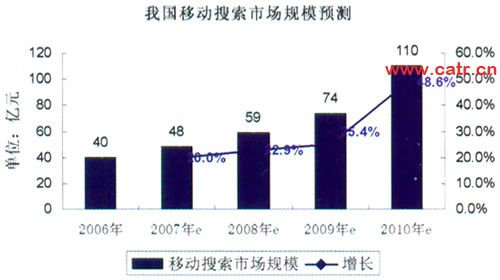 移動搜索用戶和移動搜索市場規(guī)模將在2007-2009年進入高速度增長期。