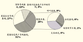 英國各類號碼查詢業(yè)務(wù)量的比重(呼叫次數(shù))