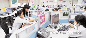 15日,重慶市電力公司客戶服務(wù)中心95598熱線大廳,仍然是一片繁忙:帶著耳麥的接線員一邊和用戶對(duì)答,一邊熟練地輸入數(shù)據(jù),填寫保修單提交,然后按下另一個(gè)等待的電話。