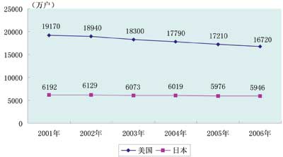 關(guān)于固定電話受沖擊的現(xiàn)象,美國比日本更加突出,這是因?yàn)槊绹蟮耐ㄐ殴境颂峁╇娫挕㈦娨暫透咚偕暇W(wǎng)捆綁服務(wù)外,基本上不提供IP電話(普通電話機(jī)經(jīng)本地市話交換機(jī)以及網(wǎng)關(guān)進(jìn)入因特網(wǎng))和VoIP電話(普通電話機(jī)經(jīng)電話連接器進(jìn)入因特網(wǎng))。美國衛(wèi)生統(tǒng)計(jì)中心公布的數(shù)據(jù)顯示,2007年下半年,美國只有移動(dòng)電話而沒有固定電話的家庭比例達(dá)到15.8%,這一比例在2004年同期只有6.1%,大約2%的美國家庭沒有電話。