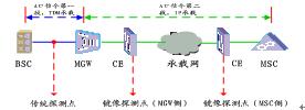 A口信令的第一段為MGW到BSC之間,是傳統(tǒng)的TDM方式,可以為高速鏈或低速鏈,物理承載類型為電口、光口均可,此時可以采用傳統(tǒng)的信令檢測方式。第二段為MSC到MGW之間的IP接口(sigtran接口),采用FE的底層傳輸方式,其信令帶寬一般為100M,此時必須采用IP接口的采集方式(即鏡像技術(shù))。從以上看出,由于目前的軟交換分離架構(gòu),鏡像采集點有兩個,可以是MGW側(cè),也可以是MSC側(cè)。