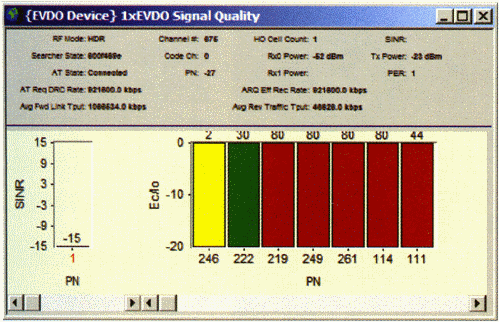 測試中,不僅可以得到各導頻級的信息、SINR、反向鏈路性能、功率控制、信令消息及RLP層吞吐量信息,還可以通過安捷倫接收機進行獨立的射頻環(huán)境測試,如導頻掃描、頻譜測試和連續(xù)波測試,通過接收機的這些測試數(shù)據(jù),查找網(wǎng)絡(luò)中存在的導頻污染、鄰區(qū)丟失、基站始終、孤島效應(yīng)、外部干擾等問題,從多方面對出現(xiàn)的問題進行定位分析,極大的提高了測試的效率。