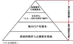 擁有4億多注冊用戶的騰訊,占有中國即時通信80%的市場份額,互聯(lián)網行業(yè)贏家通吃的定律顯露無疑,騰訊在海量用戶群基礎上開發(fā)的各種業(yè)務都在行業(yè)排名前列。當電視服務的規(guī)模用戶群得以穩(wěn)固,基于用戶規(guī)模之上的多元化服務集成成為可能,對電視服務形成高度依賴的用戶群具備了價值挖掘的條件。人人交互、人機交互依托基礎的電視分眾門戶化應用,形成了最初的用戶使用習慣;依托電視分眾門戶化集成的積累,建立用戶識別、用戶分析、收視分析、用戶數(shù)據交換的技術體系,用以支撐未來多元化娛樂與服務的開發(fā)。基于IPTV的交互能力,依托電視終端的易用性與舒適性,用戶價值、終端價值被充分挖掘,電視服務開始對其他媒介形式(含互聯(lián)網)的用戶形成吸納。圍繞交互、商務需求的電子貨幣體系逐漸完善,電視進入可有效運營、可便捷支付的良性的產業(yè)循環(huán),IPTV多元化業(yè)務之門打開。