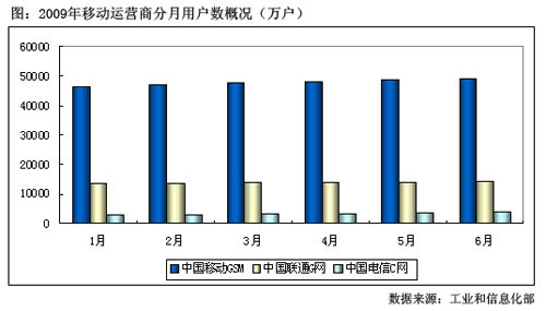 圖:2009年移動(dòng)運(yùn)營(yíng)商分月用戶(hù)數(shù)概況