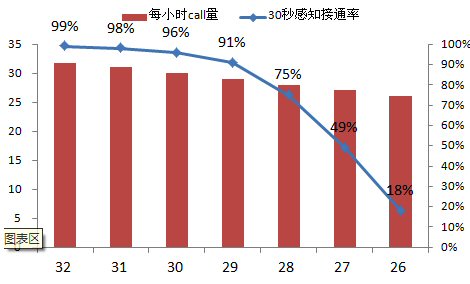 呼叫中心指標(biāo)體系中最為基礎(chǔ)最為關(guān)鍵的就是接通率指標(biāo)了,下面,本文重點將呼叫中心部分與接通率相關(guān)的運營數(shù)據(jù)轉(zhuǎn)化成圖表,用erlang-C(國際標(biāo)準(zhǔn)的呼叫中心管理軟件)的計算數(shù)據(jù)表示管理和資源投入對于呼叫中心生產(chǎn)的巨大影響。