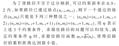 把測試模版的各個(gè)幀號(hào)n=1,…,N在一個(gè)二維直角坐標(biāo)系的橫軸上標(biāo)出,把參考模版的各幀號(hào)m=1,…,M在縱軸上標(biāo)出,通過這些表示幀號(hào)的整數(shù)坐標(biāo)畫出的橫縱線即可形成一個(gè)網(wǎng)格,網(wǎng)格中的每一個(gè)交叉點(diǎn)(n,m)表示測試模版中某一幀與訓(xùn)練模版中某一幀的交叉點(diǎn)。動(dòng)態(tài)規(guī)劃算法可以歸結(jié)為尋找一條通過此網(wǎng)格中若干格點(diǎn)的路徑,路徑通過的格點(diǎn)即為測試和參考模版中距離計(jì)算的幀號(hào)。