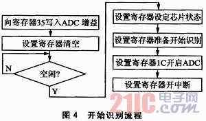 、坶_始識別。設(shè)置幾個(gè)相關(guān)的寄存器,即可開始語音的識別。圖4是相關(guān)的流程。ADC通道即為麥克風(fēng)輸入通道,ADC增益也就是麥克風(fēng)音量,可設(shè)定值00H~7FH,建議設(shè)置值為40H~6FH,值越大代表MIC音量越大,識別啟動越敏感,但可能帶來更多誤識別;值越小代表MIC音量越小,需要近距離說話才能啟動識別功能,好處是對遠(yuǎn)處的干擾語音沒有反應(yīng)。本文中設(shè)定值為43H。